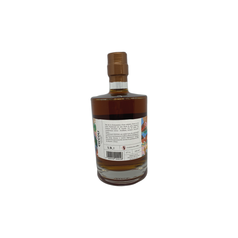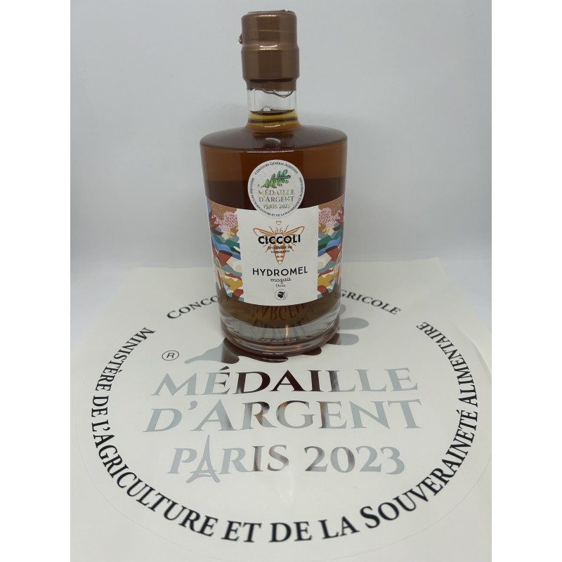 L’hydromel se consomme frais, en apéritif ou bien en digestif. Il est issu de la fermentation du miel AOP et patiemment vieilli en fût de châtaignier. L'hydromel n’est ni collé, ni filtré pour conserver l’ensemble des ses saveurs. Afin d’assurer sa conservation, un minimum de sulfite est ajouté (10 g par hectolitre). Notre hydromel présente 13,10 % Vol d’alcool. Les bouchons thermoscellés.