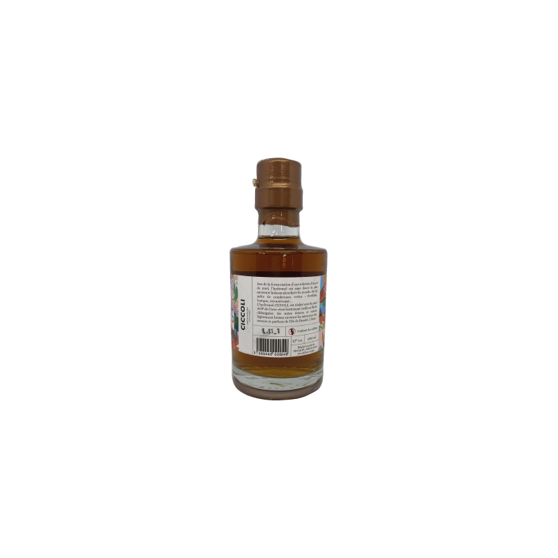 L’hydromel se consomme frais, en apéritif ou bien en digestif. Il est issu de la fermentation du miel AOP et patiemment vieilli en fût de châtaignier. L'hydromel n’est ni collé, ni filtré pour conserver l’ensemble des ses saveurs. Afin d’assurer sa conservation, un minimum de sulfite est ajouté (10 g par hectolitre). Notre hydromel présente 13,10 % Vol d’alcool. Les bouchons thermoscellés.