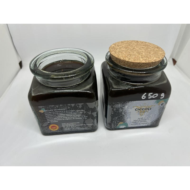 Le miel de miellats du maquis est ambré, foncé à très foncé. Il possède un goût malté, des arômes de réglisse, de caramel et de fruits mûrs. Il est persistant en bouche. Il reste épais mais ne se cristallise pas. Les miellats sont récoltés de juin à septembre sur les zones littorales et les zones boisées associées au maquis. Les cistes associés aux calicotomes, chênes, eucalyptus... constituent ses dominantes florales.