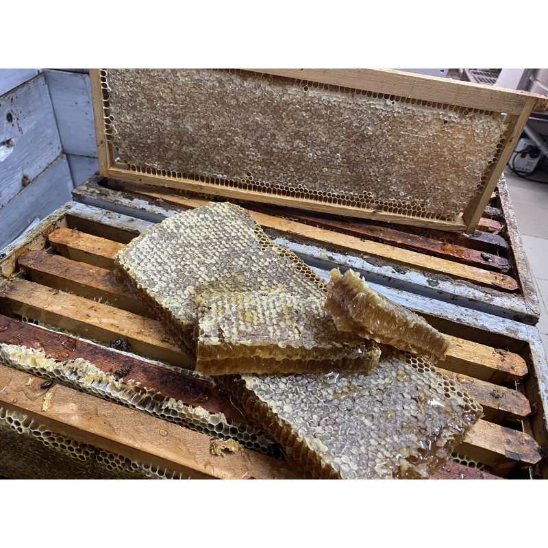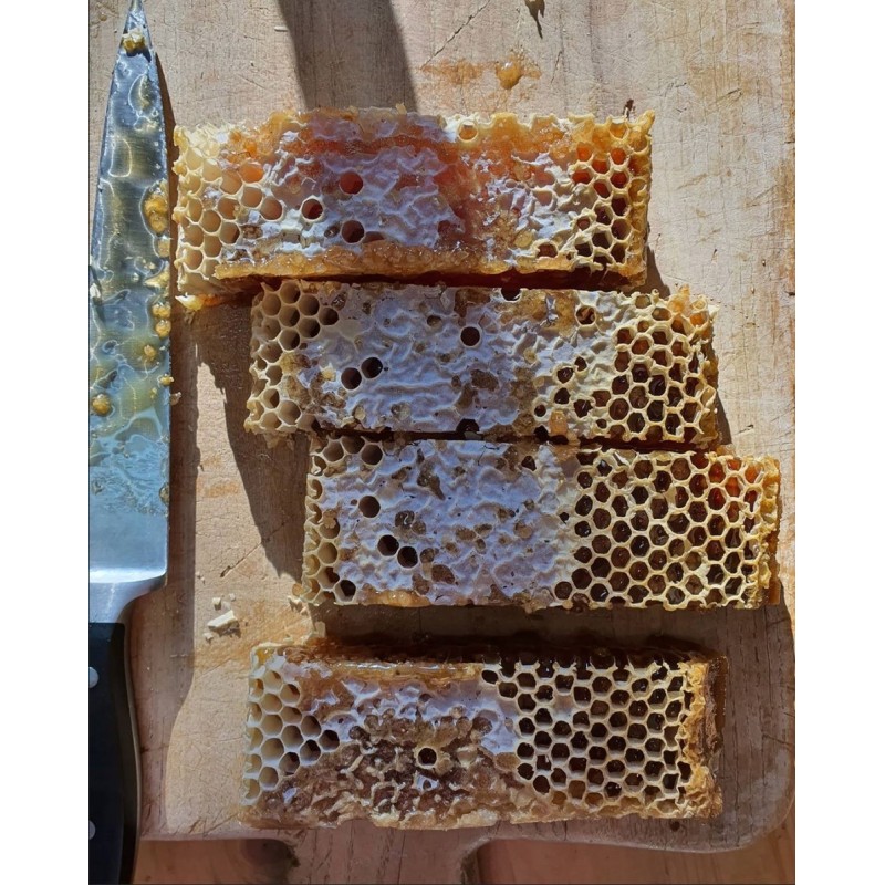 Pour les vrais amateurs, le miel se mange directement en rayon dans les alvéoles de cire. Ainsi, il garde toute sa saveur originelle et accompagne à merveille le fromage. Pour une meilleure conservation, nous le mettons sous vide. Les cadres totalement operculés pèsent environ 2,5 kg, mais des pièces de 200, 400, 600 et 800 g sont disponibles.